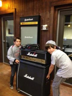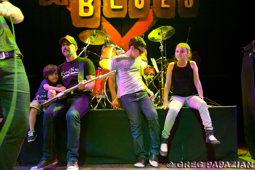 Slash above helping to Shred Kids' Cancer with Christian Renard, Teagan Stedman and Alex Berson